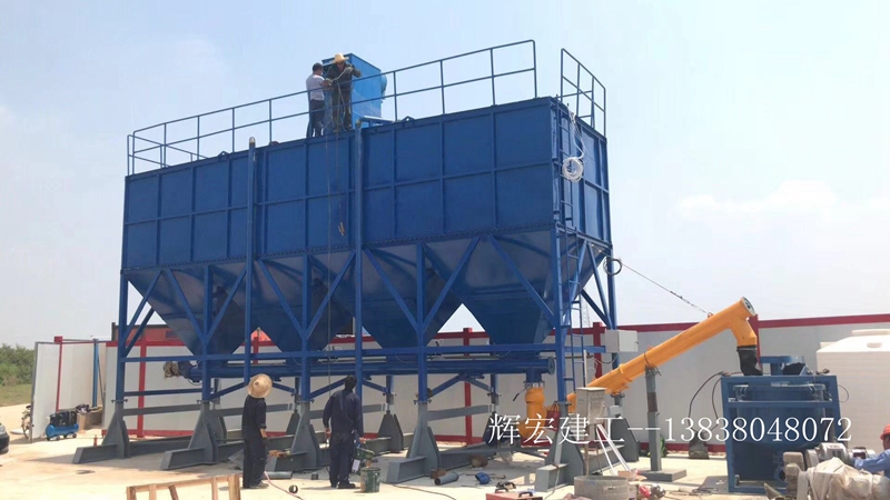 一般為圓筒支架結構,其上部有除塵設備,防止粉塵泄漏,下部裝有破拱裝置,防止粉料結塊,使粉料卸出順暢,并裝有料位傳感設備,可隨時掌握倉內物料使用情況。一般采用散裝水泥輸送車將粉料氣送入倉內;